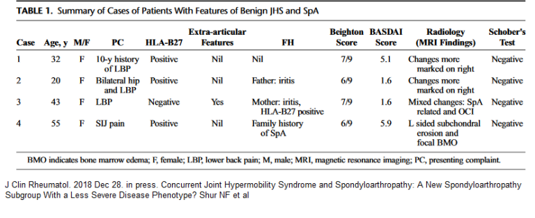 Concurrent Joint Hypermobility Syndrome and Spondyloarthropathy: A New Spondyloarthropathy Subgroup With a Less Severe Disease Phenotype?