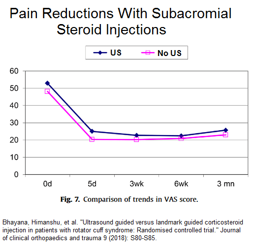 Years ago, though they injected local in shoulder bursa, they injected the cortisone in the buttock and got the same results as injecting it it bursa. This study was ignored by people who wanted ultrasound to be better. Now, a randomized control trial did not find ultrasound versus landmark shoulder injection made any difference. Using US could be a lengthy procedure and I’m glad it is put to rest.