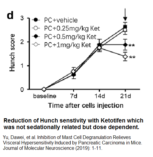 - Mast cell deficit bred mice still had some pancreatic cancer pain so no panacea. – they called it “incomplete development of chronic visceral hypersensitivity and the spontaneous nociceptive response in mast cell–deficient mice”\