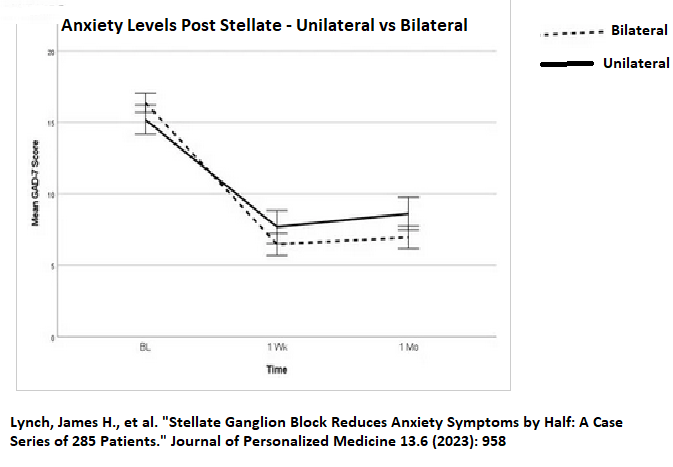 Lynch, James H., et al. “Stellate Ganglion Block Reduces Anxiety Symptoms by Half: A Case Series of 285 Patients.” Journal of Personalized Medicine 13.6 (2023): 958.